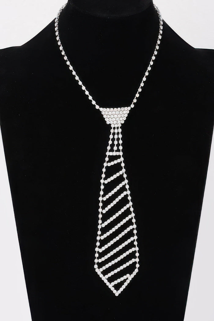 The Rhinestone Necktie Necklace is a bold blend of glam and edge. Inspired by classic necktie silhouettes, this necklace features dazzling rhinestones arranged in a striking pendant. Ideal for formal events or adding statement flair to a simple look, this piece turns heads with its confidence and sparkle.