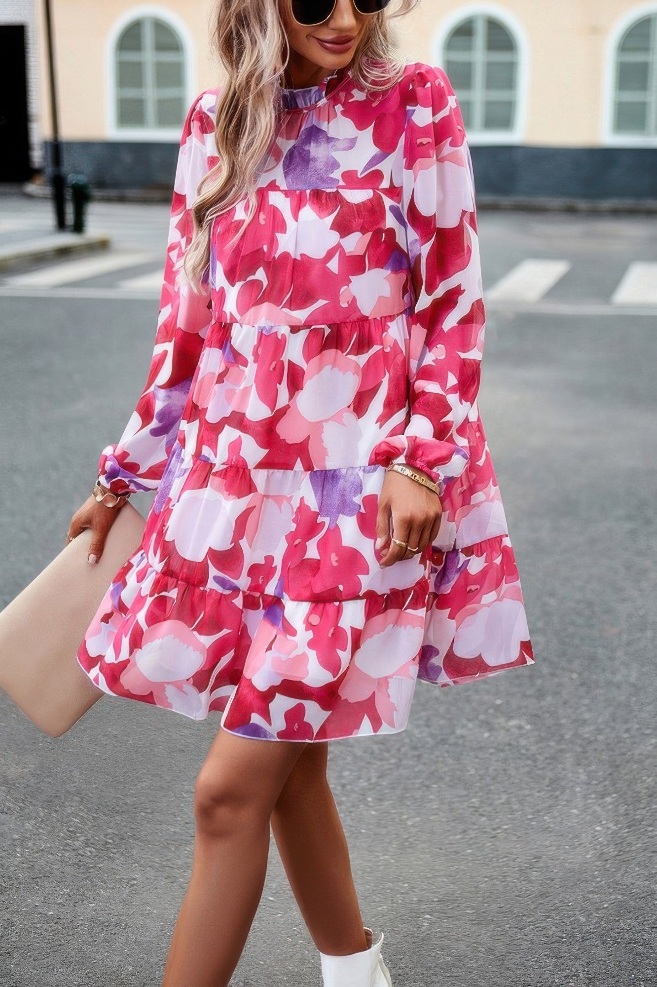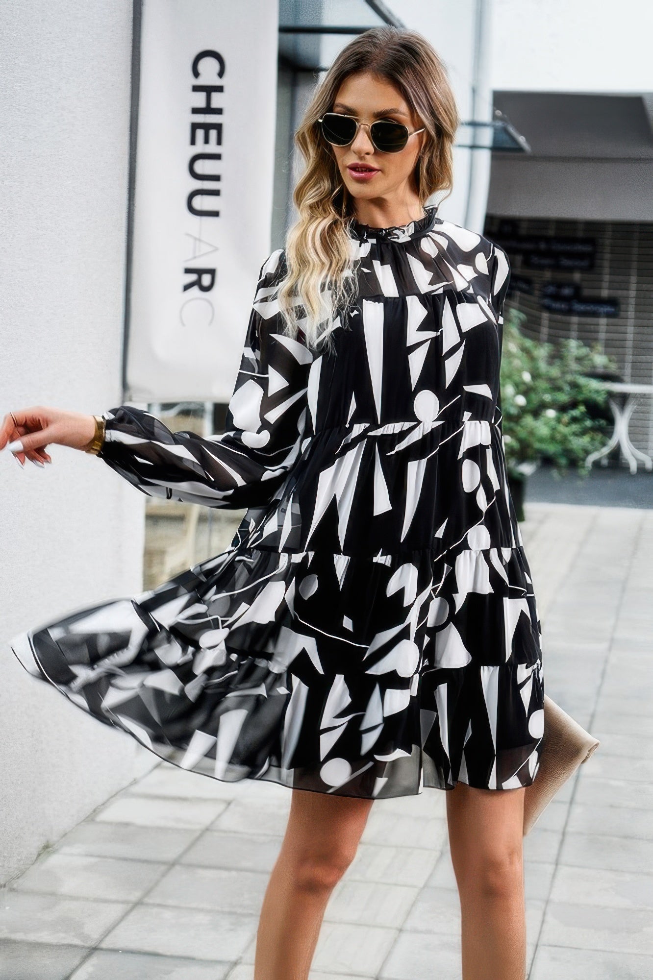 Color Block Hem Ruffle Printing Loose Fit Midi Dress