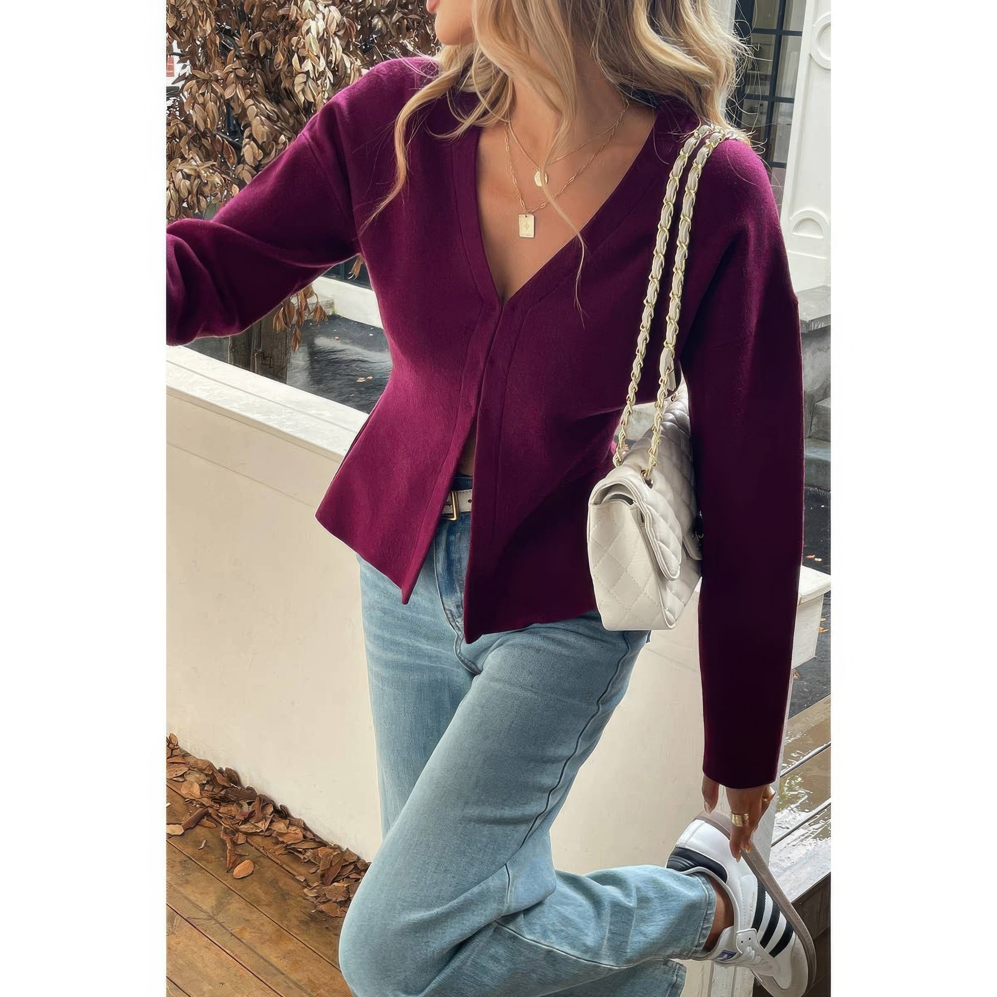 Solid V-Neck Raglan Sleeve Knit Sweater