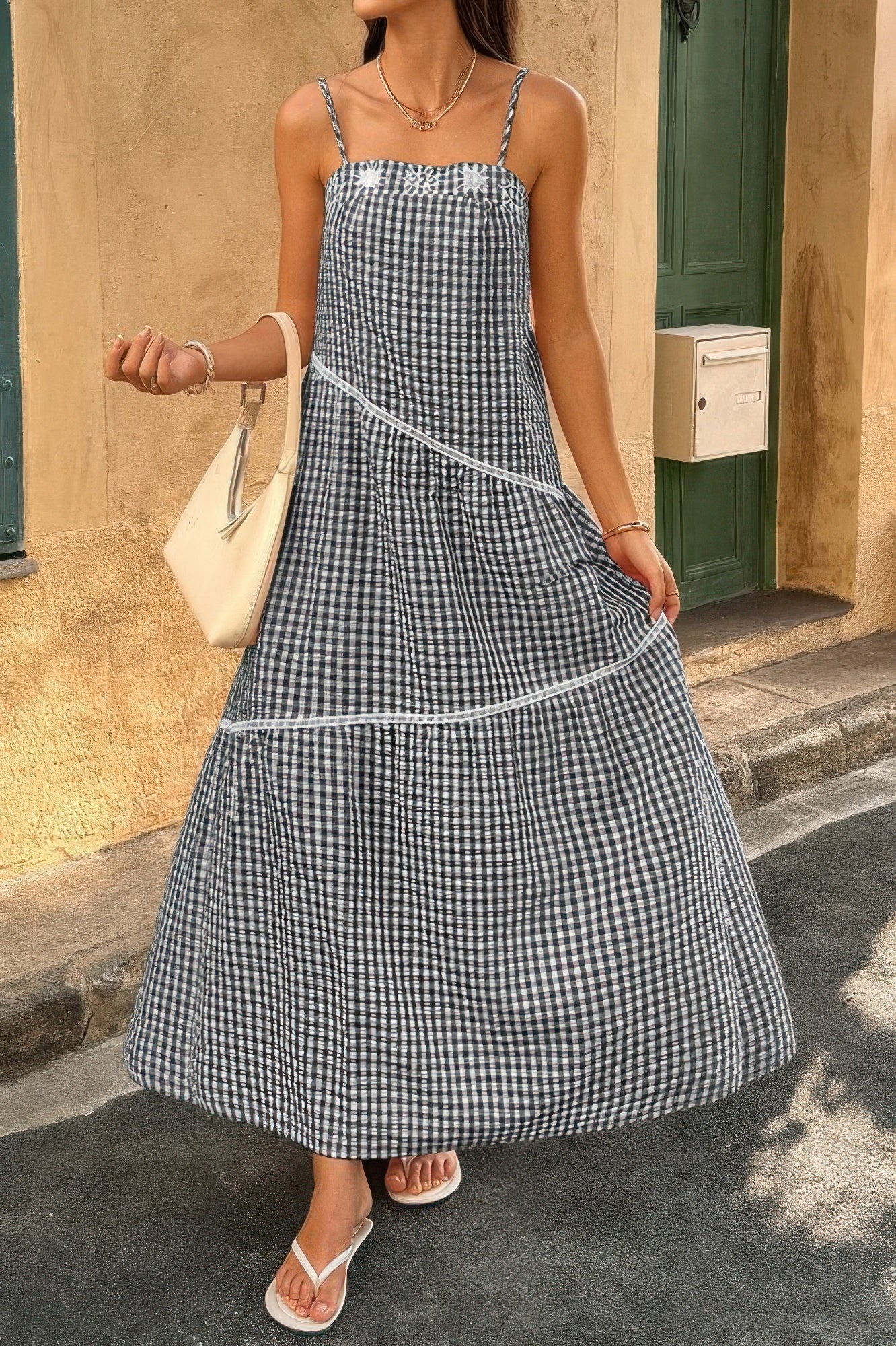 The Suspenders Plaid Color Block A-Line Dress combines timeless pattern with youthful charm. Featuring suspenders-style straps and a bold plaid design, this dress adds structure to casual styling. The A-line silhouette flatters the figure while allowing easy movement — perfect for school days or outings.